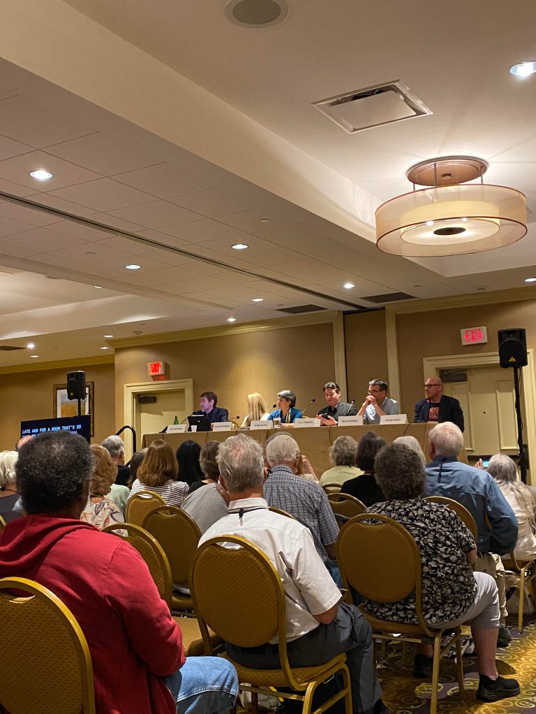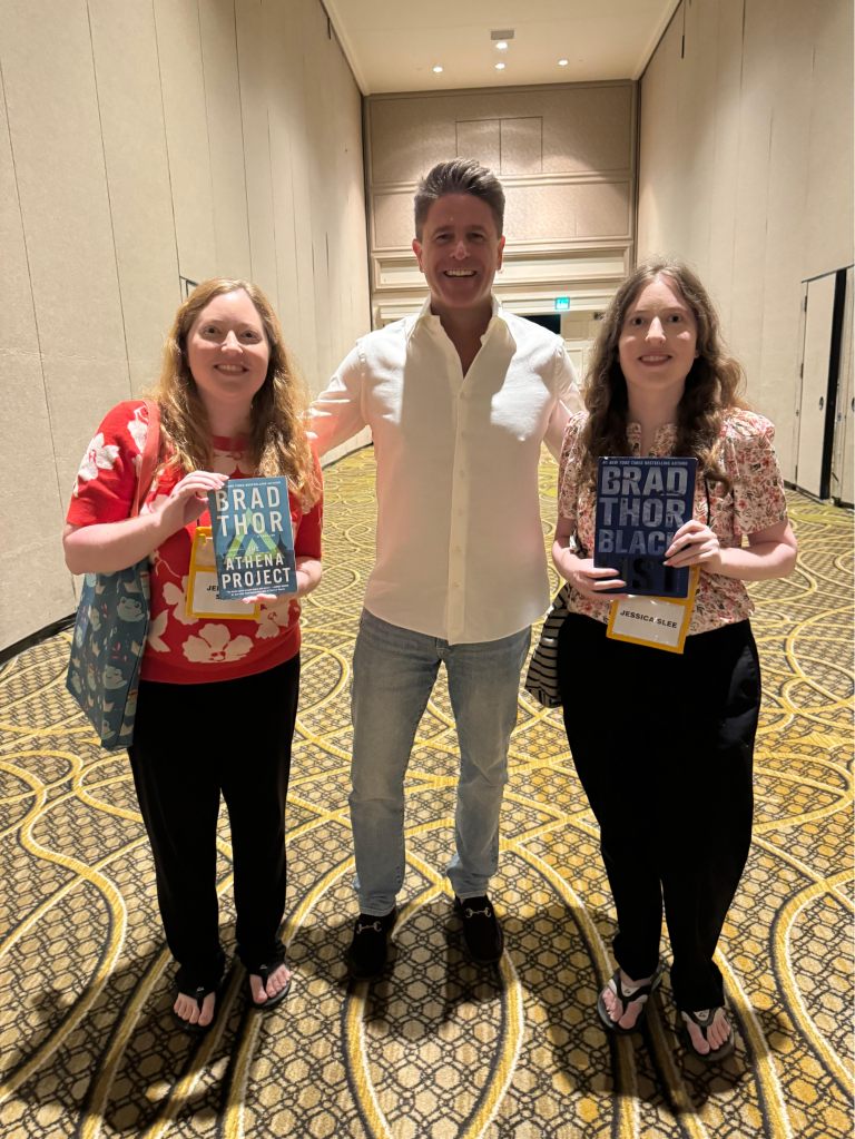 There were a variety of panels presented every day: five sessions across the morning and afternoon, with a choice of six different panels in each session, so there was something for everyone—every subgenre of mystery and thriller writing was represented, along with panels for debut authors, co-authoring, craft sessions and everything in-between. The panels were fun, informative, and introduced us to lots of new authors and books to read! Jessica won two giveaways and got free books from the panelists. After each session, panelists hold book signings, so you can meet one of your favorite authors and get a copy of your book signed, or buy one at the on-site bookstore and have the writer sign it for you, all in the same place.
